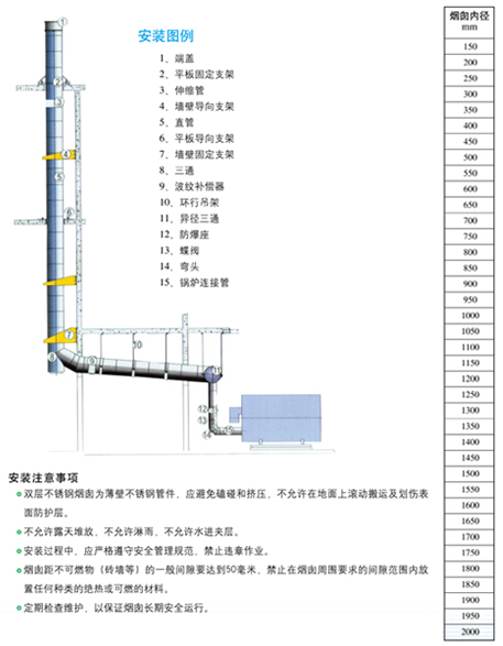 其設(shè)計、制造、檢驗各道程序嚴(yán)格按照國標(biāo)GB50051-2013《煙囪設(shè)計規(guī)范》、CJ/T288-2008《預(yù)制雙層不銹鋼煙道及煙囪》和國標(biāo)公認(rèn)的BSI-BS*4076:89《Specification for Steel Chimneys》英國國家標(biāo)準(zhǔn)進行制作。